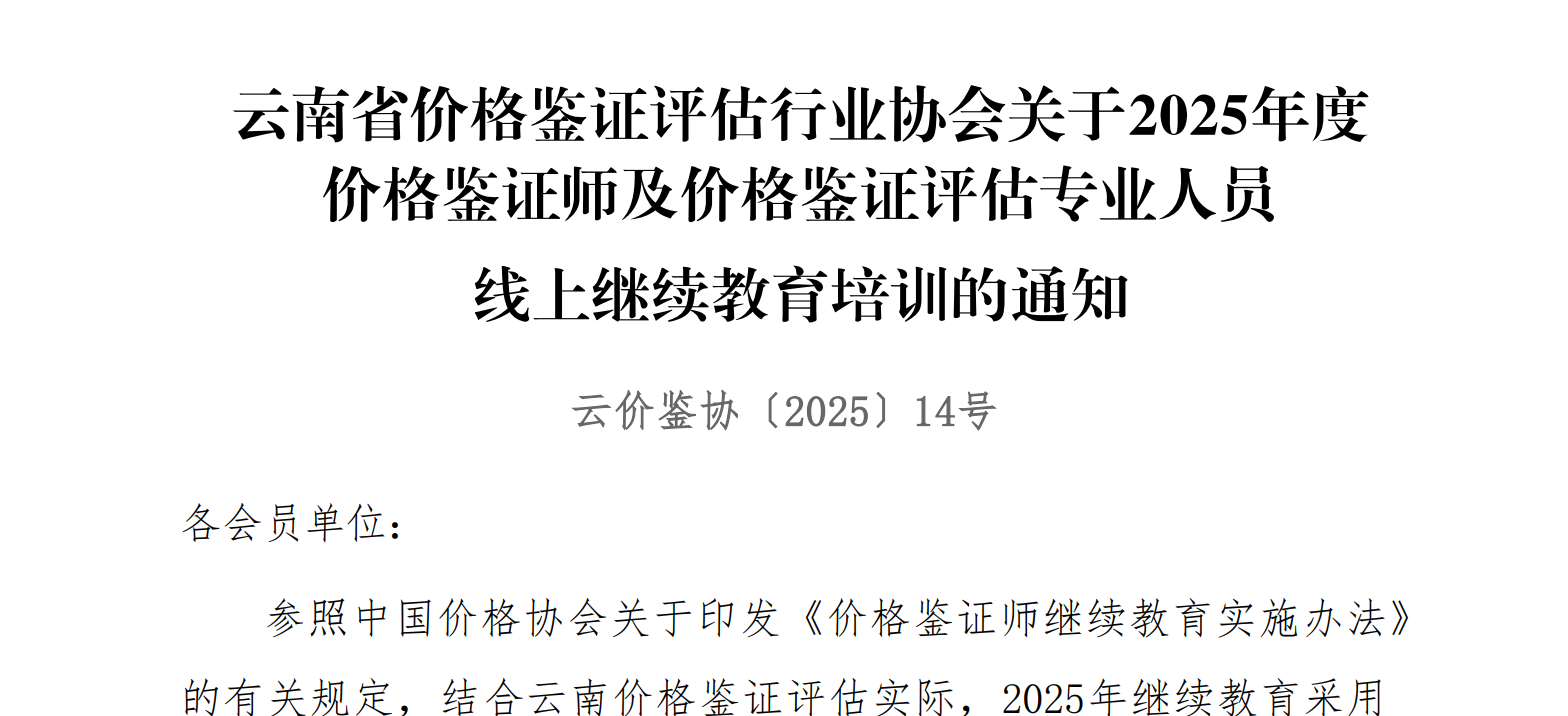 云南省价格鉴证评估行业协会价格鉴证评估专业人员继续教育平台
