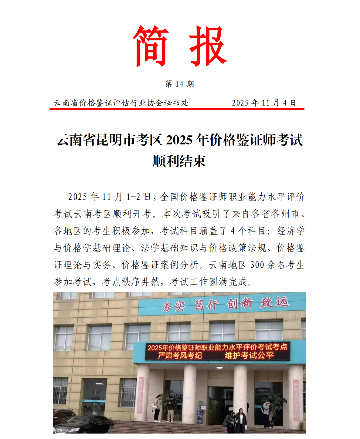 > 云南省昆明市考区2025年价格鉴证师考试顺利结束