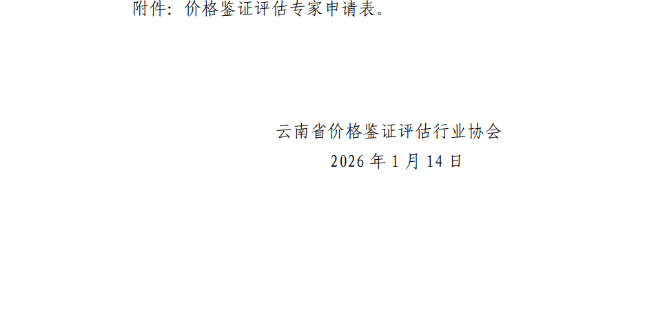 > 云南省价格鉴证评估行业协会征集专家库人选通知