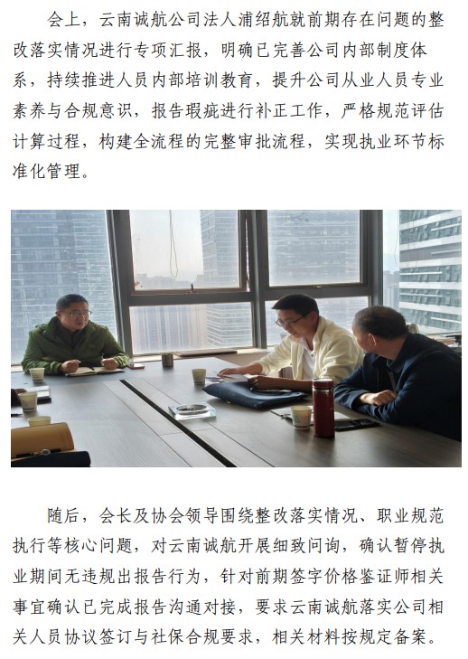 关于云南诚航评估咨询有限公司停业整顿期满整改情况会议简报