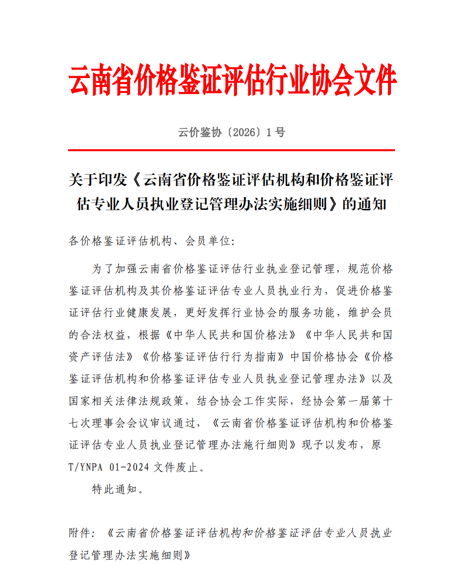 附件:《云南省价格鉴证评估机构和价格鉴证评估专业人员执业登记管理办法实施细则》