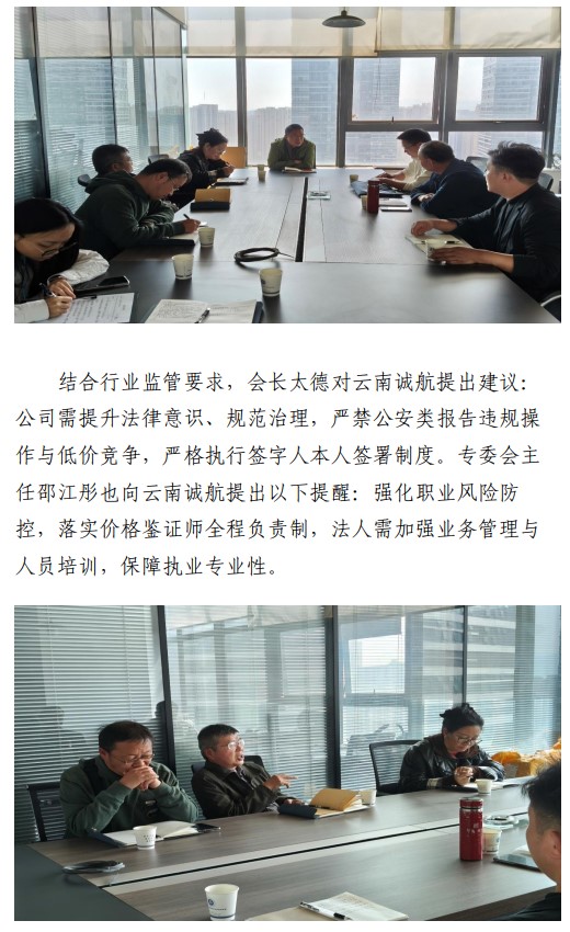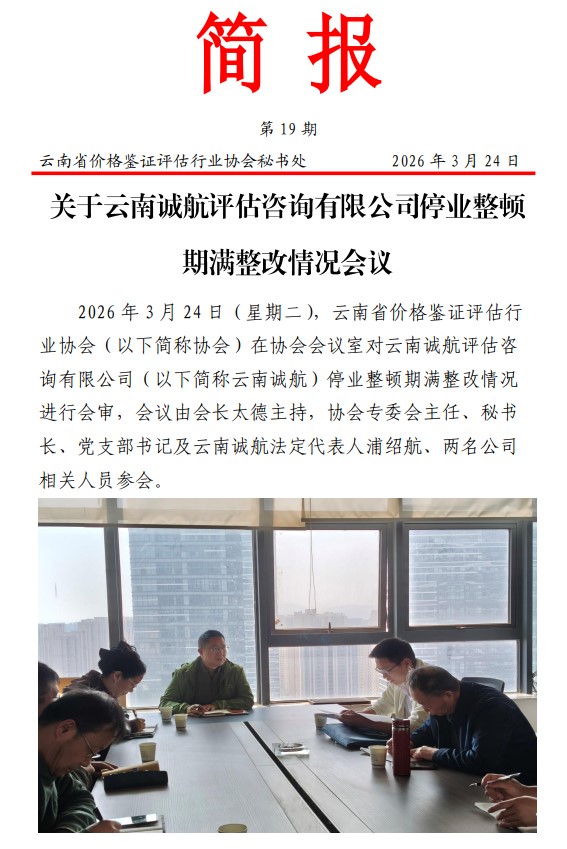 关于云南诚航评估咨询有限公司停业整顿期满整改情况会议简报
